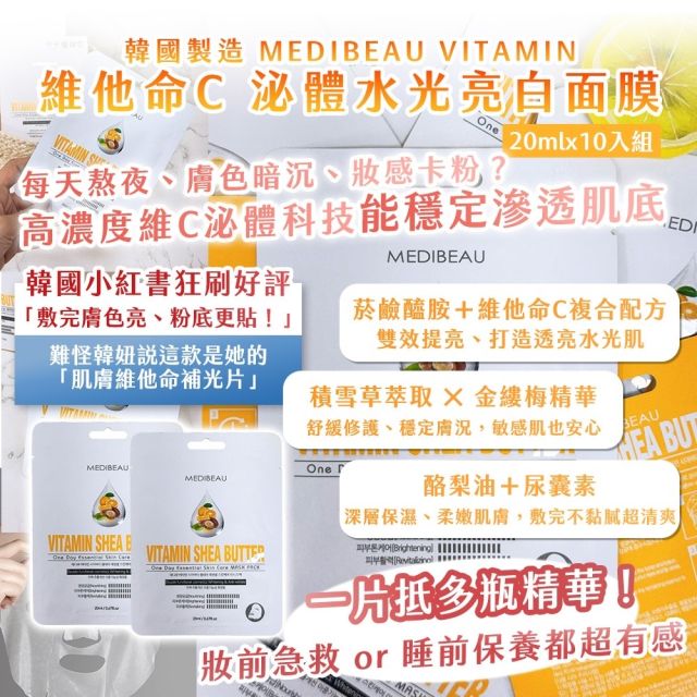 韓國製造MEDIBEAU VITAMIN 維他命C 泌體水光亮白面膜20ml×10入/包(2月中)