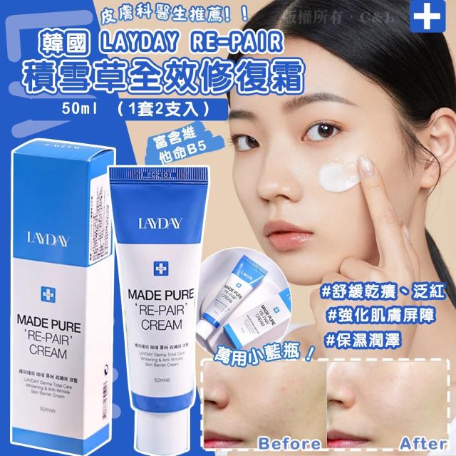 韓國 LAYDAY RE-PAIR 積雪草全效修復霜萬用小藍霜 50ml (1套2支入)(9月尾)