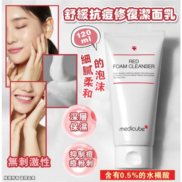 MEDICUBE RED FOAM CLEANSER 舒緩抗痘修復潔面乳 120ml (10月中)