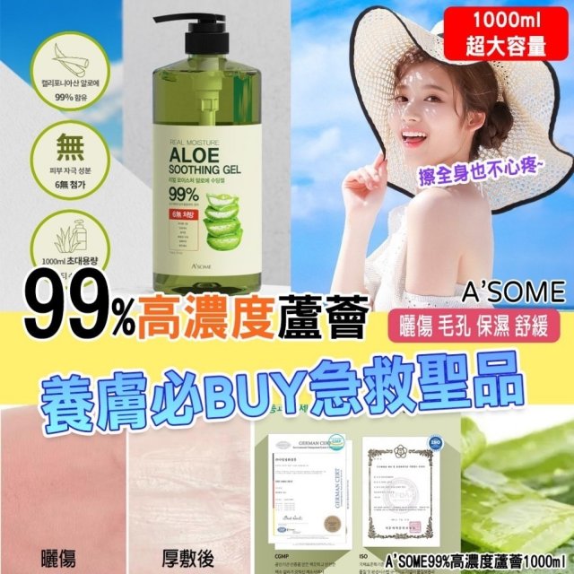 韓國 A’SOME 99% 高濃度蘆薈 1000ml (10月中)
