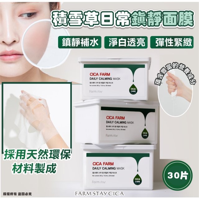 韓國 FARM STAY CICA 積雪草日常鎮靜面膜 (1盒30片) (10月頭)