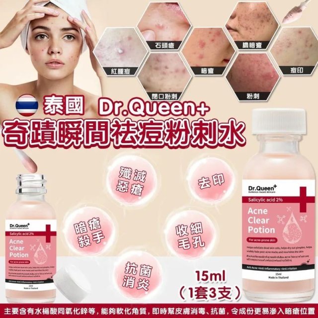 泰國 Dr.Queen+ 奇蹟瞬間去痘粉刺水 15ml (1套3支) (7月尾)