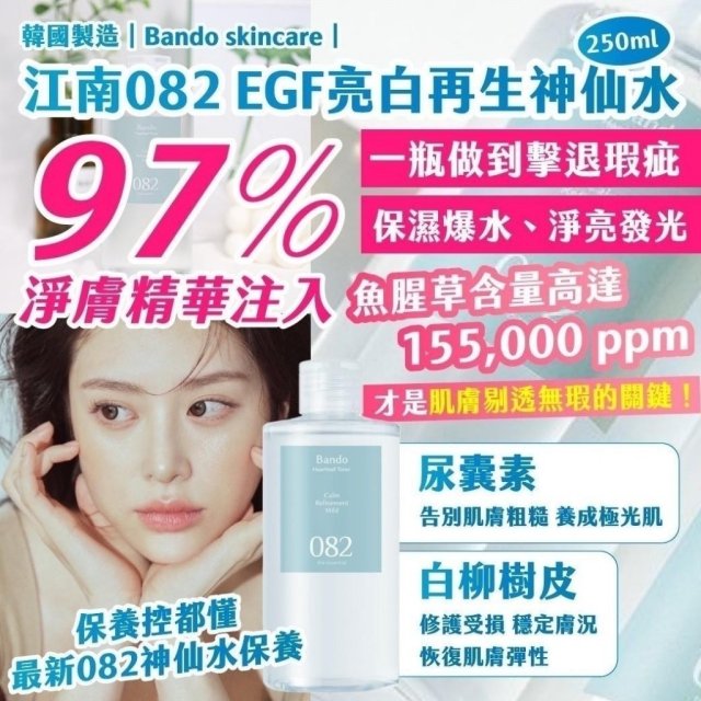 韓國製造|Bando skincare|江南082 EGF亮白再生神仙水 250ml (6月尾)