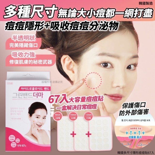 韓國多尺寸隱形痘痘貼67入 (1套2盒) (7月中)