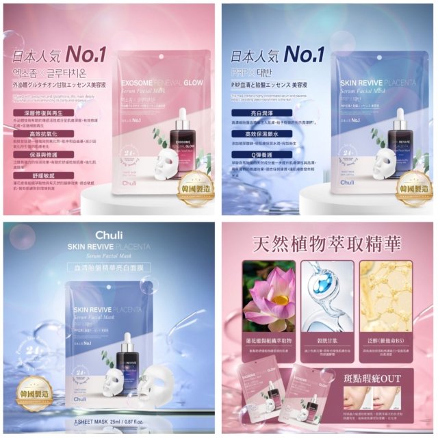 韓國 Chuli初梨 外泌體喚活精華面膜 & 血清胎盤精華亮白面膜 25ml *10片(6月中)