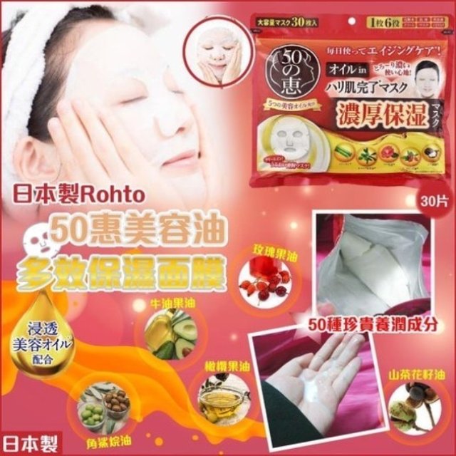 日本製 Rohto 50惠美容油多效保濕面膜 (1包30片) (6月中)