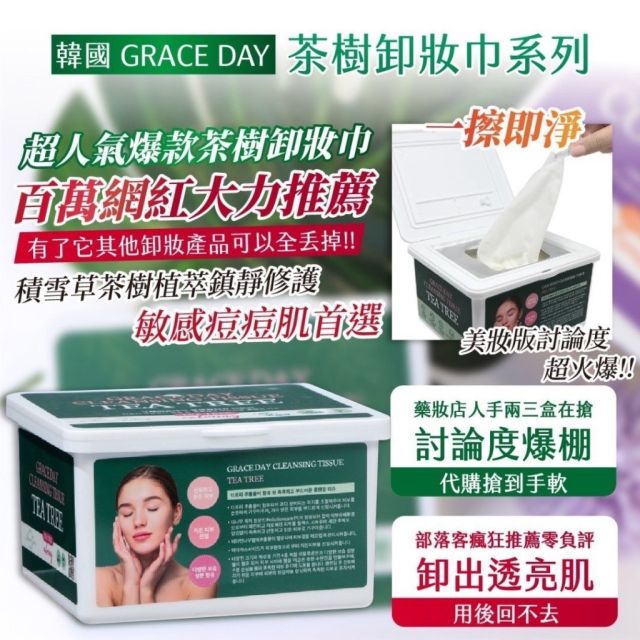 韓國製造 GRACEDAY 茶樹卸妝巾(4月尾)