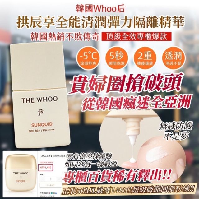 韓國製造 Whoo后 拱辰享全能清潤彈力隔離精華(3月尾)