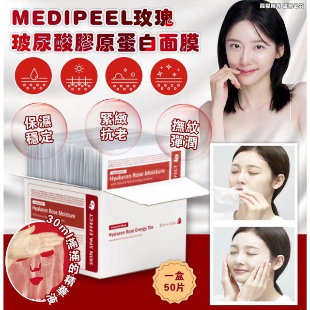 MEDIPEEL玫瑰玻尿酸膠原蛋白面膜【一盒50片】(12月中)