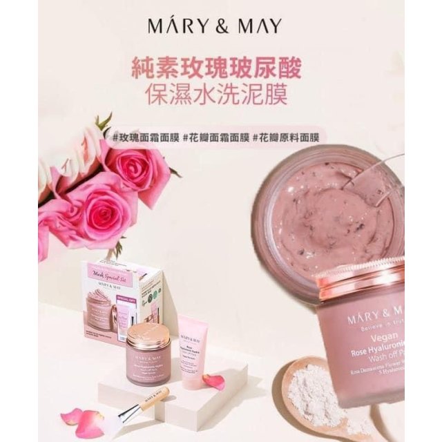 Mary & may 純素玫瑰透明質酸保濕水洗面膜 特別套裝 - 125g+30g (加送掃)(1月尾)