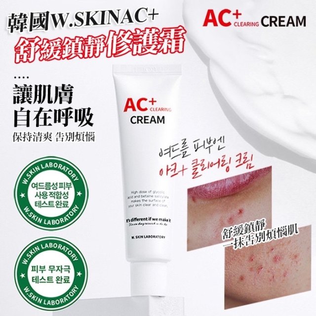 韓國製造 韓國專業醫美品牌W.SKIN AC+戰痘淨膚鎮靜無痕修護霜(2月中)