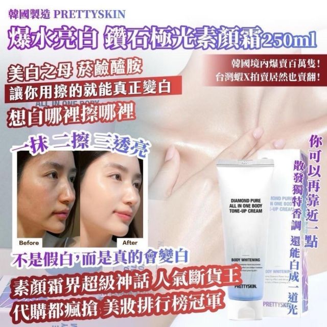 🇰🇷韓國製造 PRETTYSKIN 爆水亮白 鑽石極光素顏霜250ml (11月中)