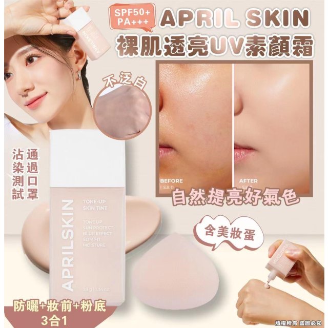 APRIL SKIN 裸肌透亮UV素顏霜含美妝蛋 套裝(9月尾)