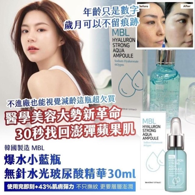 🇰🇷韓國製造 MBL爆水小藍瓶 無針水光玻尿酸精華30ml (10月尾)