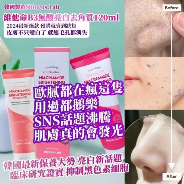 韓國製造Shincos.Lab 維他命B3無酸亮白去角質 120ml (10月中)