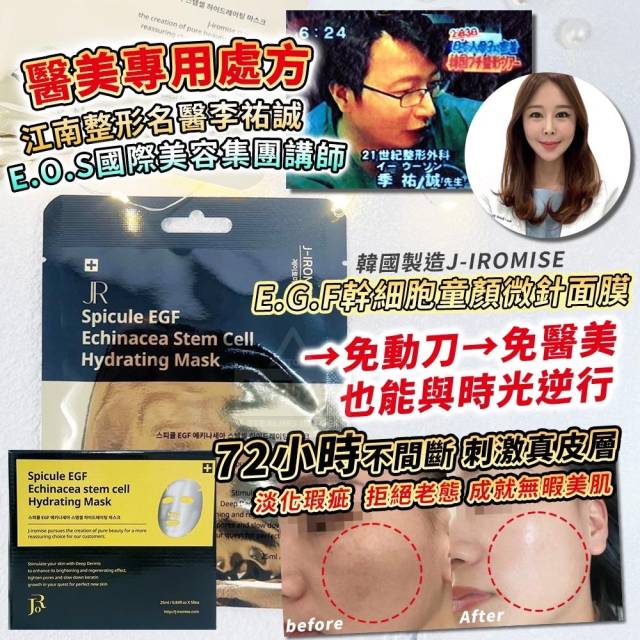 韓國製造 J-IROMISE醫美專用處方 E.G.F幹細胞童顏微針面膜50入/盒(10月尾)