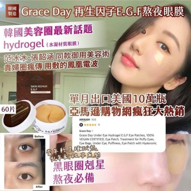 韓國製造 Grace Day 再生因子E.G.F熬夜眼膜 60片