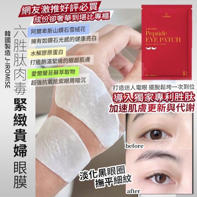 韓國製造 J-IROMISE 六胜肽肉毒緊緻貴婦眼膜15對入 (1套3包)