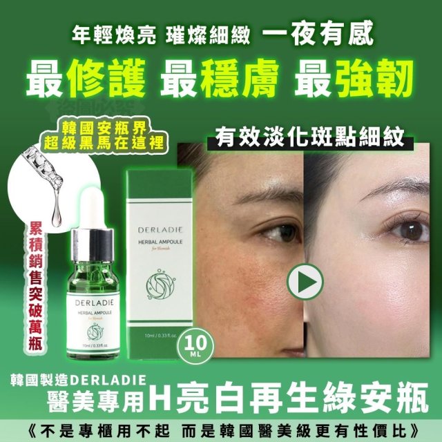 韓國製造 DERLADIE 醫美專用H亮白再生綠安瓶10ml(買一送一/組)