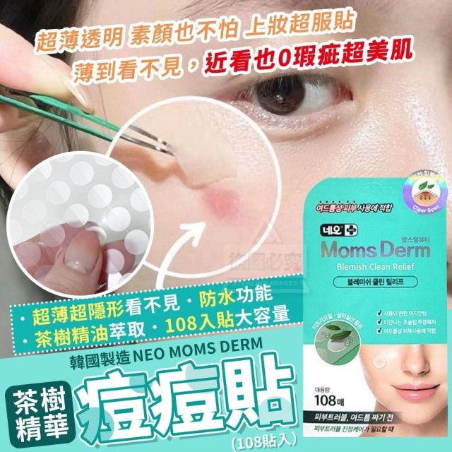 韓國製造NEO MOMS DERM超薄隱形茶樹精華痘痘貼(108貼入)