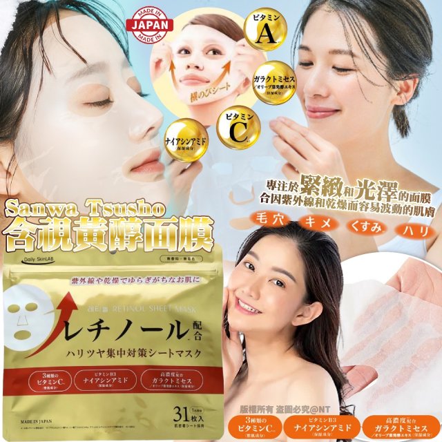 日本Sanwa Tsusho 含視黃醇面膜 31入
