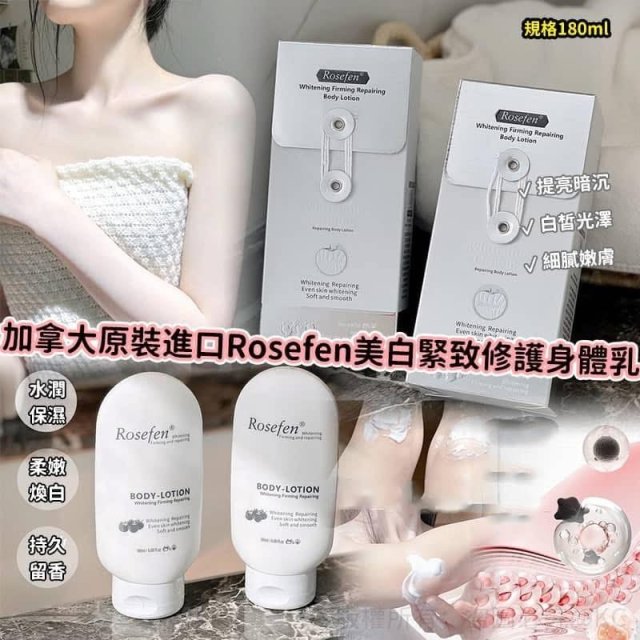 加拿大原裝進口 Rosefen 美白緊致修護身體乳 180ml (約1-2星期到貨)
