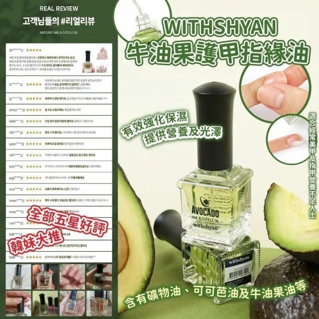 🇰🇷韓國 WITHSHYAN牛油果護甲指緣油 (1套2支) (10月頭)