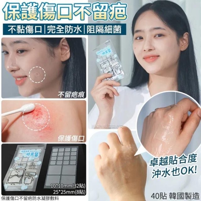 韓國保護傷口不留疤防水凝膠敷料 (1包40貼) (10月尾)