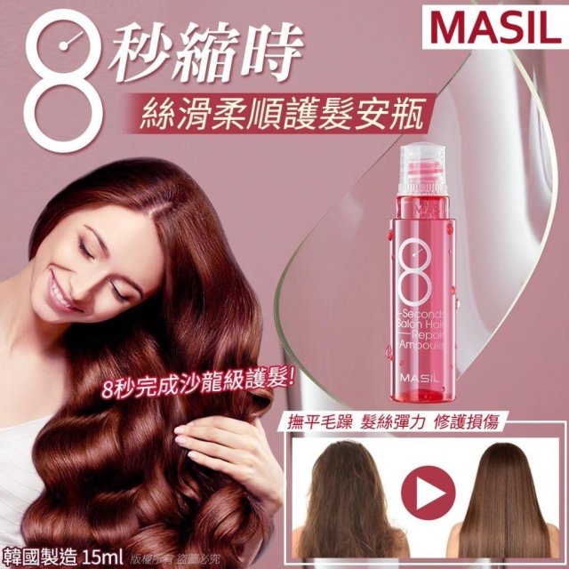 韓國MASIL 八秒縮時絲滑柔順護髮安瓶-15ml(1套10支)(10月中)