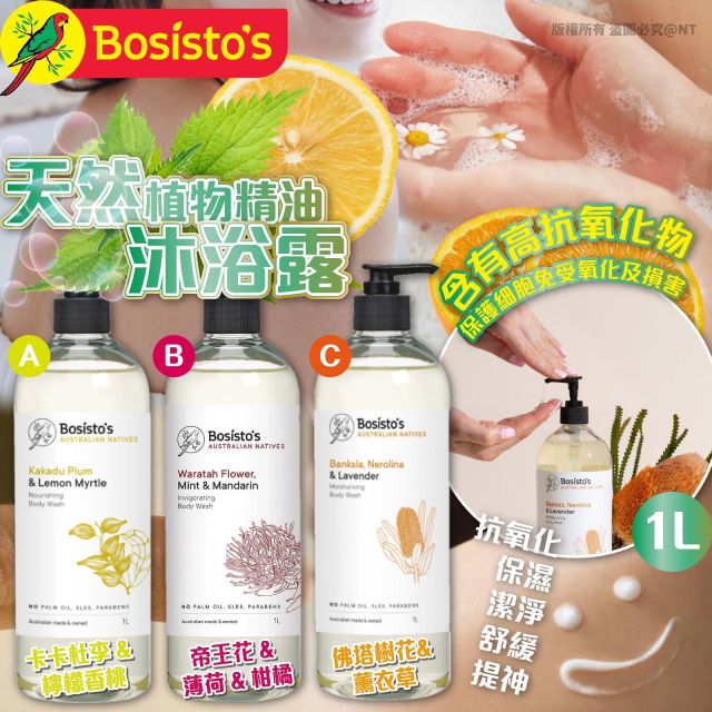 澳洲 Bosisto's 天然植物精油沐浴露 1L (9月尾)