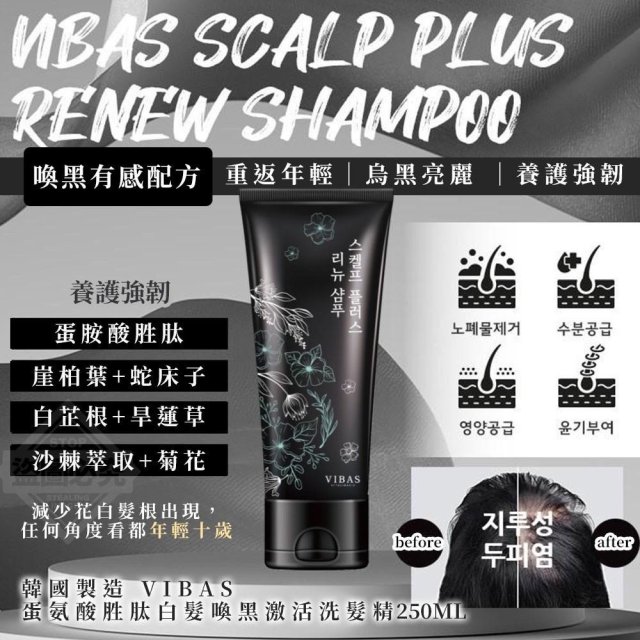 韓國製造 VIBAS蛋氨酸胜肽 白髮喚黑激活洗髮精250ml