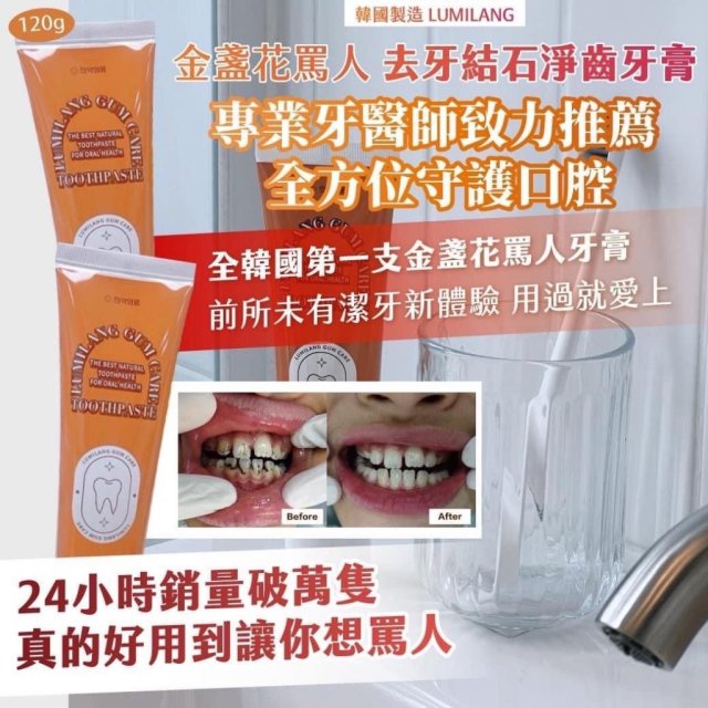 韓國製造LUMILANG 金盞花罵人去牙結石淨齒牙膏 120g《一套兩條》