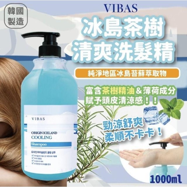 韓國 VIBAS 冰島茶樹酷爽保濕洗髮精 1000ml