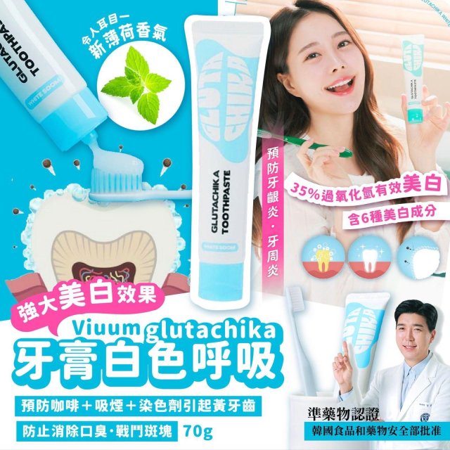 韓國🇰🇷製造Viuum glutachika牙膏白色呼吸70克