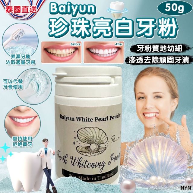 泰國直送 Baiyun 珍珠亮白牙粉 50g (10月中)