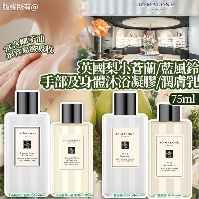 Jo Malone 手部及身體沐浴凝膠/潤膚乳 75ml (10月頭)