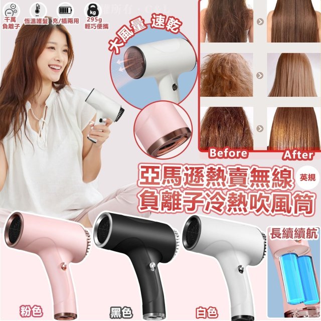 亞馬遜熱賣無線負離子冷熱吹風筒 👏 (9月頭)