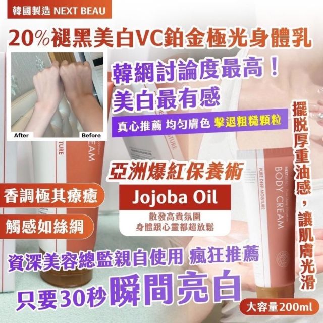 韓國製造NEXT BEAU 20%褪黑美白VC鉑金極光身體乳(8月尾)