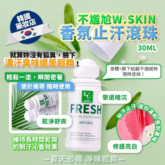 韓國藥妝店 W.SKIN 香氛止汗滾珠 30ml (9月中)