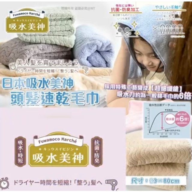 日本吸水美神|頭髮速乾毛巾33×80cm (6月尾)
