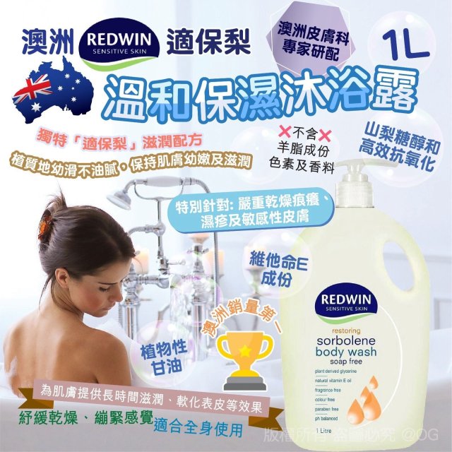 澳洲 Redwin 適保梨溫和保濕沐浴露 1L (6月中)