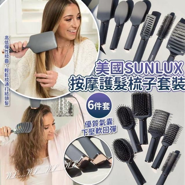 美國 SUNLUX 氣囊按摩護髮梳子6件套裝(7月尾)