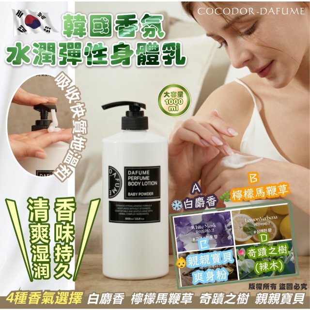 韓國 COCODOR DAFUME 香氛水潤彈性身體乳 1000ml (6月尾)