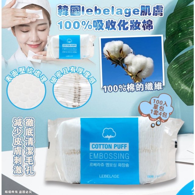 韓國 Lebelage 肌膚100%吸收化妝棉 (1套4包) (7月中)