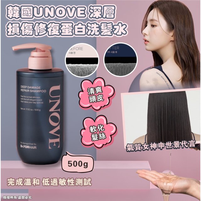 韓國 UNOVE 深層損傷修復蛋白洗髮水500g (4月尾)