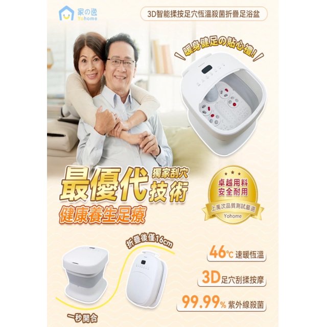 日本Yohome 3D智能揉按足穴恆溫殺菌折疊足浴盆(4月尾)