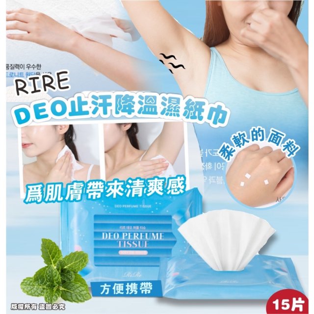 韓國 RIRE DEO 止汗降溫濕紙巾15片 (1套4包) (5月尾)