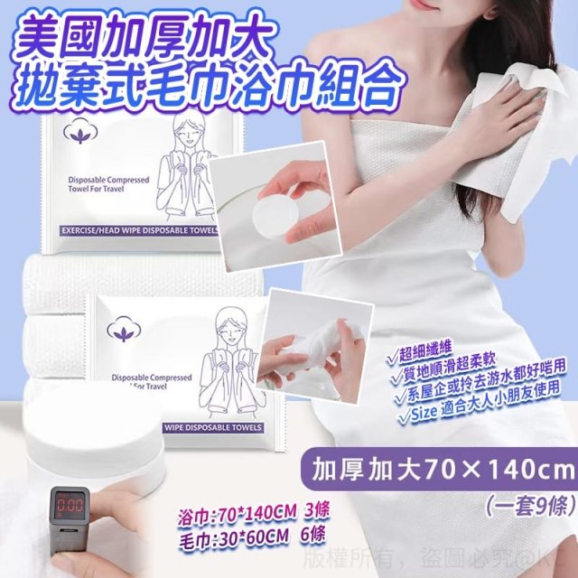 美國加厚加大拋棄式毛巾浴巾組合 (1套9條) (4月尾)