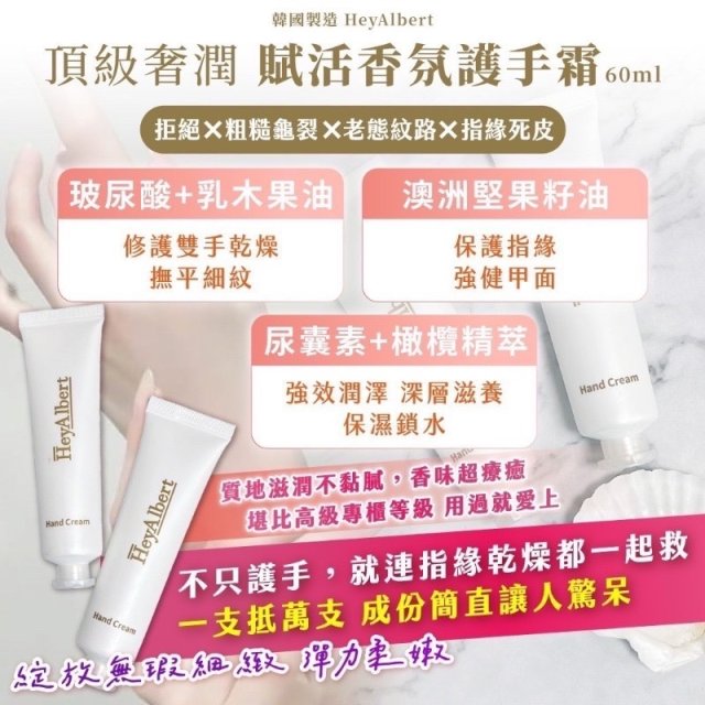 🇰🇷韓國製造 HeyAlbert 頂級奢潤 賦活香氛護手霜60ml (一套2支)(5月中)
