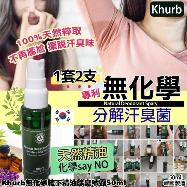 Khurb無化學腋下精油除臭噴霧50ml 1套2支 (11月中)